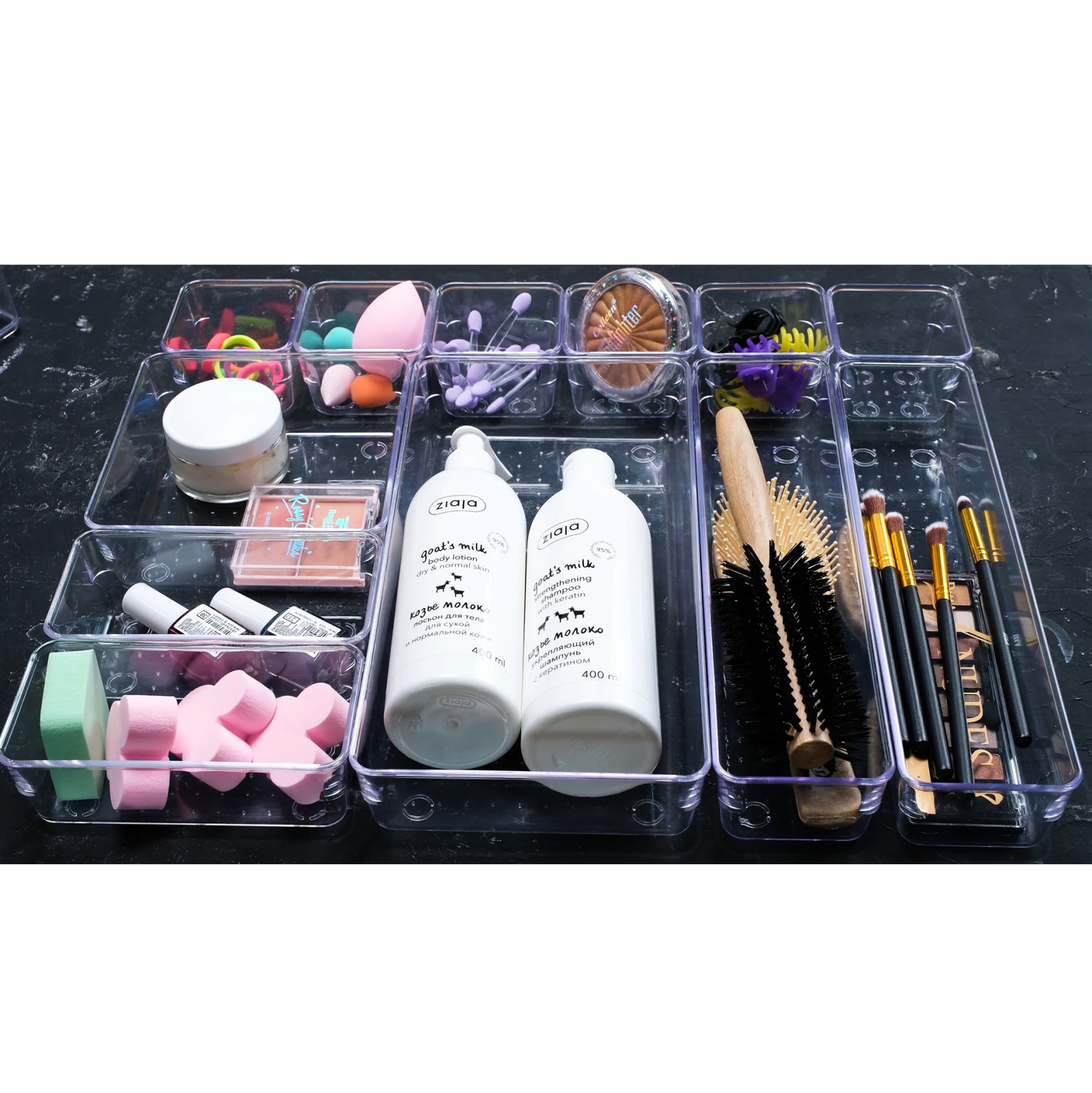 Ideale pentru a-ti organiza sertarele cu bijuterii si articole de machiaj. Daca doriti, il puteti folosi si in bucatarie pentru tacamuri sau diverse alte obiecte. Cu ajutorul acestui set practic puteti schimba aspectul sertarelor din baie intr-un mod practic si estetic.